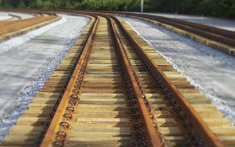 Dormentes para linhas férreas confeccionados com madeira de eucalipto de alta densidade e submetidos ao processo de tratamento em autoclave.